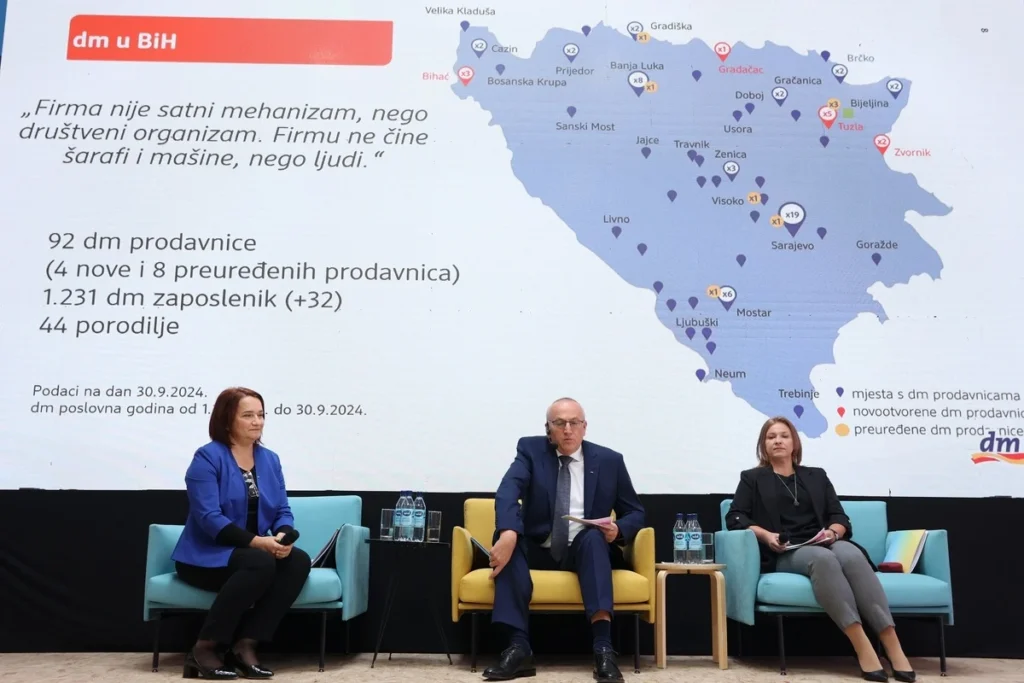 Rezultati18. godine poslovanja kompanije dm drogerie markt u Bosni i Hercegovini potvrdili su kontinuiran, stabilan poslovni rast i razvoj ove kompanije na domaćem tržištu. Tome su doprinijela sve veća ulaganja u zadovoljstvo kupaca te u dobrobit zaposlenika i društva, a detalji su predstavljeni danas na godišnjoj konferenciji za medije u Sarajevu. Rezultati za proteklu poslovnu godinu (1.10.2023 – 30.9.2024), u kojoj je ostvaren promet u iznosu od 421,2 miliona KM, ukazuju na rast od 22,38% u odnosu na prethodnu poslovnu godinu i još jednu potvrdu liderske pozicije na drogerijskom tržištu.