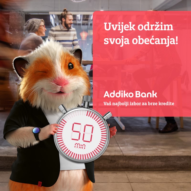 „Uvijek održim svoja obećanja“ poruka je nove promotivne akcije Addiko Bank Sarajevo, u okviru koje svi klijenti koji apliciraju za iznos kredita od 50.000 KM dobivaju povratnu odluku u roku od 50 minuta. U slučaju da ne dobiju odgovor, klijenti će od Banke dobiti na poklon prvu ratu kredita. Akcija važi do kraja aprila 2023. godine.