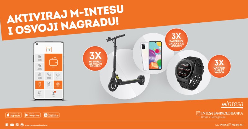 Intesa Sanpaolo Banka BiH je u cilju promocije m-Intesa usluge organizovala i nagradnu igru “Aktiviraj m-Intesu i osvoji nagradu!” od 1.12.2020. do 28.02.2021. godine. Svi klijenti koji u tom
