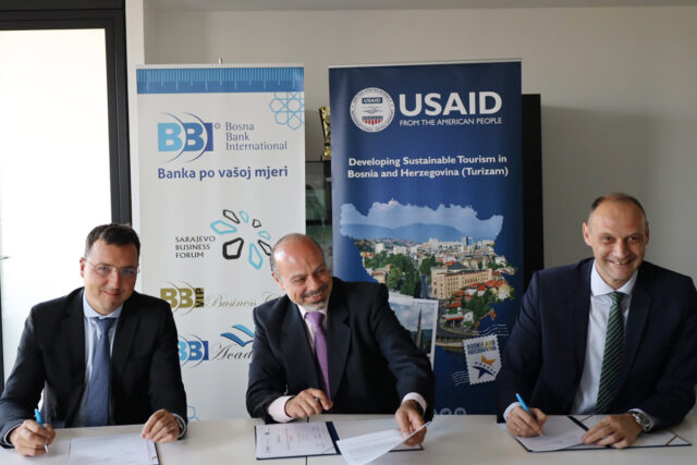 Bosna Bank International (BBI) i USAID-ov Projekt razvoja održivog turizma u Bosni i Hercegovini (Turizam) nastavili su saradnju započetu na 11. Sarajevo Business Forumu (SBF), potpisivanjem Zajedničkog plana provedbe poboljšanja pristupa dostupnim finansijskim sredstvima malih i srednjih preduzeća (SME) iz sektora turizma.