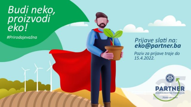 Nakon uspješno realiziranog projekta Budi neko, posluj eko!, kojim je Partner MKF novčano nagradila mala i mikropreduzeća koja posluju po eko principima, ova vodeća mikrokreditna fondacija u segmentu energijske efikasnosti pokreće novi nagradni konkurs Budi neko, proizvodi eko! čiji je cilj stimulisanje eko poljoprivredne proizvodnje u Bosni i Hercegovini.