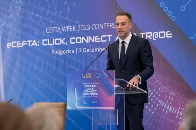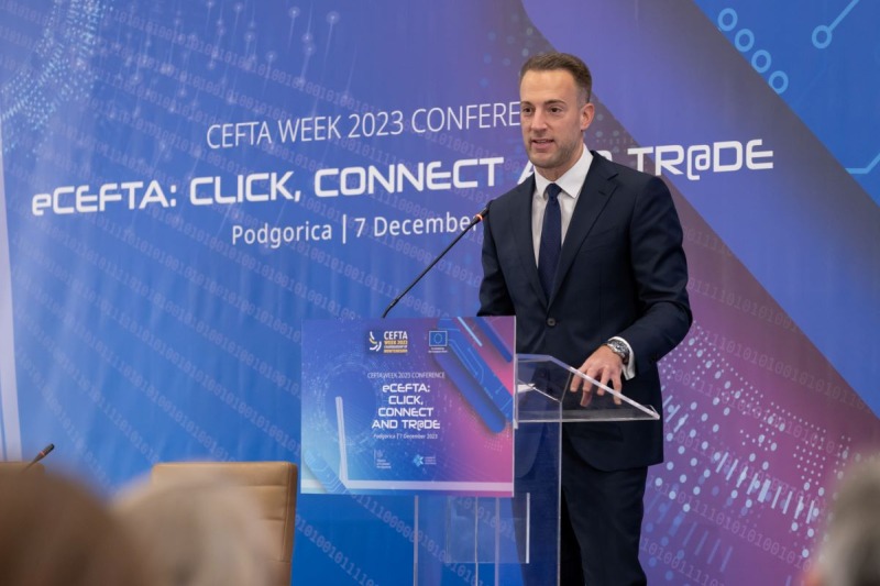 Konferencija CEFTA Week pod nazivom “eCEFTA: Klikni, poveži se i trguj”(eCEFTA: Click, Connect and Tr@de), koja je uživo i online okupila oko 300 učesnika, održana je danas u Podgorici. Tradicionalno godišnje okupljanje visokih zvaničnika iz CEFTA ekonomija, Evropske unije i drugih regionalnih i međunarodnih organizacija, zajedno sa predstavnicima privrede, pružilo je priliku da se istraže potencijali digitalne trgovine, sa fokusom na stvaranje efikasnijeg i međusobno povezanog trgovinskog okruženja. Također, događaj je bio prilika i za sumiranje postignutih rezultata i postavljanje osnova za budući tok djelovanja.