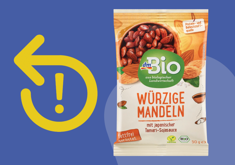 S ciljem zaštite potrošača, dm drogerie markt d.o.o. iz predostrožnosti povlači proizvod dmBio bademi začinjeni japanskim tamari umakom od soje, 50 g. Riječ je o proizvodu s brojem šarže 0722121202 s rokom trajanja 15.12.2023. i brojem šarže 0722112901 s rokom trajanja 01.12.2023. Povlačenje se ne odnosi na druge proizvode iz dmBio asortimana, kao ni na druge rokove trajanja ovog proizvoda. Broj šarže i rok trajanja istaknuti su na pakovanju.