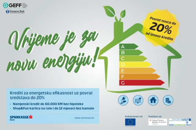 Sparkasse banka, u saradnji s Evropskom bankom za obnovu i razvoj (EBRD), obezbijedila je za klijente posebnu liniju proizvoda za finansiranje projekata unapređenja energetske efikasnosti u stambenim jedinicama, uz povrat sredstava i do 20%.