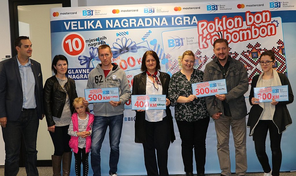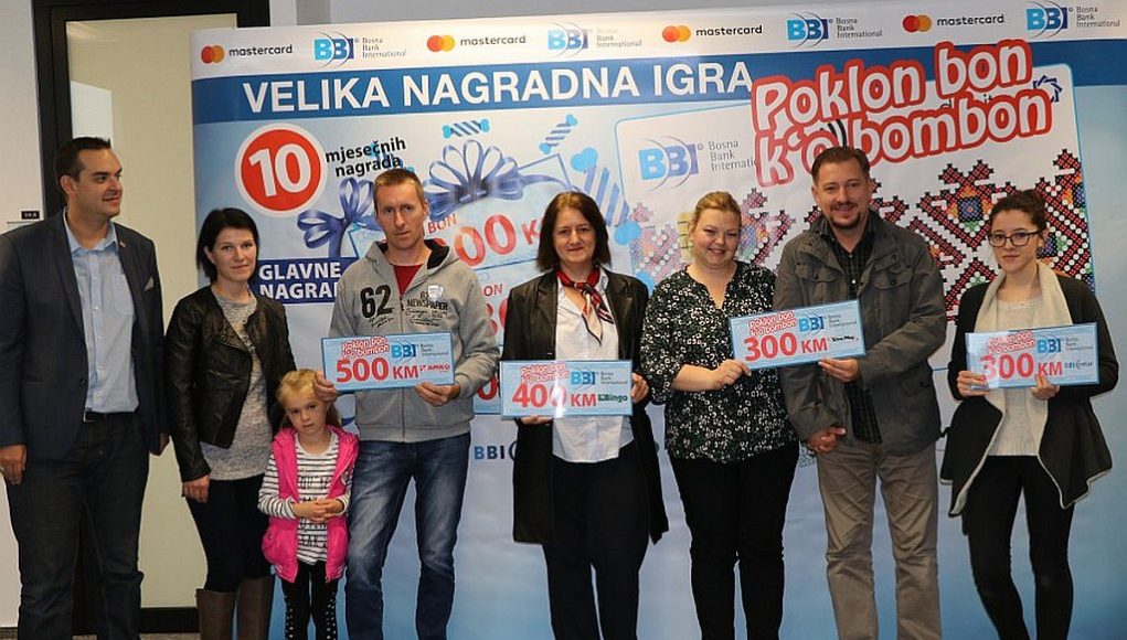 BBI banka u saradnji sa kompanijom Mastercard pokrenula je nagradnu igru “Poklon bon k’o bombon“ za sve korisnike BBI Debit Mastercard i Gold Debit Mastercard kartica. Učešće u nagradnoj igri, koja traje od 15.08. do 15.12.2018. godine, mogu uzeti svi korisnici BBI Mastercard® kartica koji tokom jednog mjeseca naprave bezgotovinske transakcije na prodajnim mjestima u BiH ili inozemstvu, u ukupnom iznosu od minimalno 150 KM.