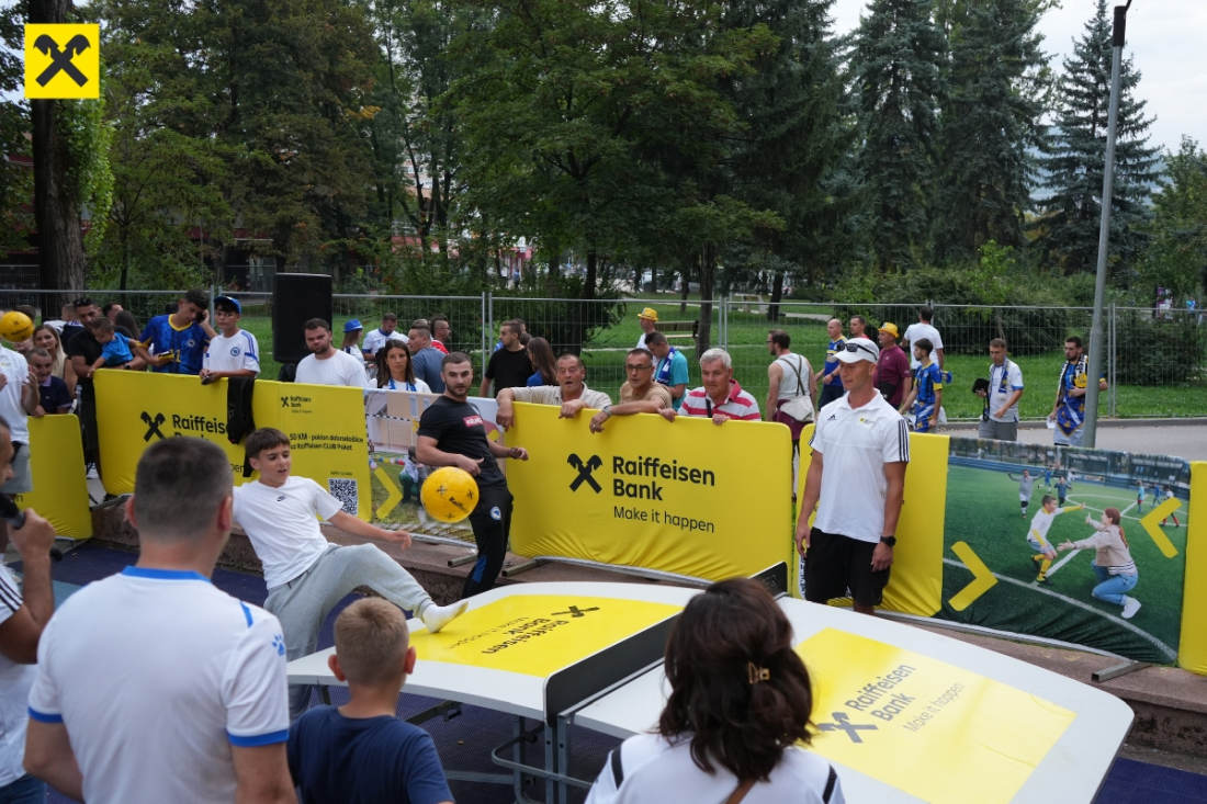 U tom duhu, kao dobar komšija već 25 godina, Raiffeisen banka je jučer organizovala fun zonu na Bilinom polju od 17.00h do 20:00h, koja je oživjela stadion i pružila navijačima nezaboravno iskustvo. Posjetitelji su imali priliku uživati u zabavnim igrama, a oni najbolji su bili nagrađeni. Dodatno, ovo je bila prilika da se upoznaju sa proizvodima Raiffeisen banke i apliciraju za njih na licu mjesta.