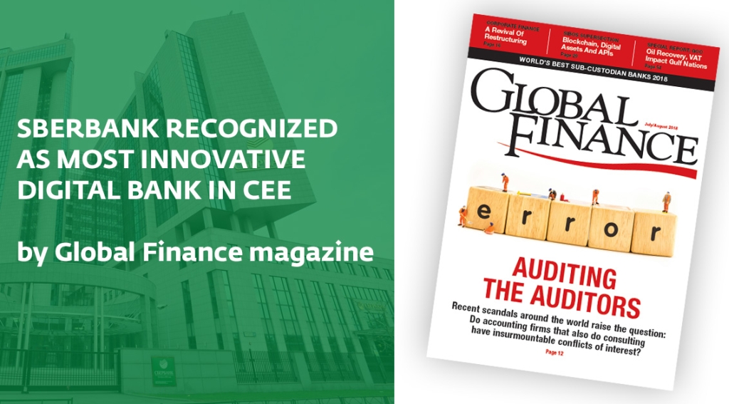 Magazin Global Finance proglasio je Sberbank za najinovativniju digitalnu banku Centralne i Istočne Evrope. Nagrada se dodjeljuje na osnovu aktivnosti korištenja najsavremenije tehnologije u pružanju usluga klijentima.