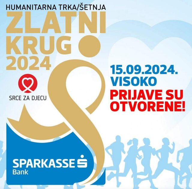 Humanitarna utrka/šetnja „Zlatni krug Sparkasse“ u organizaciji udruženja „Srce za djecu oboljelu od raka“ i pokroviteljstvom Sparkasse Banke održat će se 15.09.2024. u 11h u Visokom.