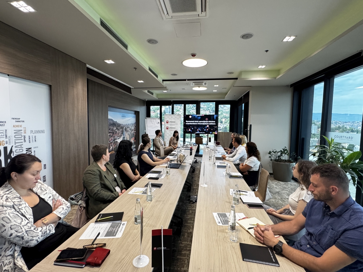 Udruženje profesionalnih rizik menadžera u Bosni i Hercegovini (UPRMBiH) je u ponedjeljak – 14 jula u Sarajevu, u saradnji sa konsultantskom kompanijom RISKA, BA uspješno organizovalo specijalistički seminar na temu „Savremeni okvir upravljanja rizicima u bankarskom i finansijskom sektoru” za predstavnike lokalnog bankarskog i finansijskog sektora koji su kroz interaktivna predavanja i diskusiju imali priliku razmjeniti znanja i iskustva o aktuelnim izazovima i savremenim pristupima upravljanju rizicima, uz poseban fokus na regulatorne zahtjeve, tehnološke promjene i strategije jačanja otpornosti finansijskog sistema.