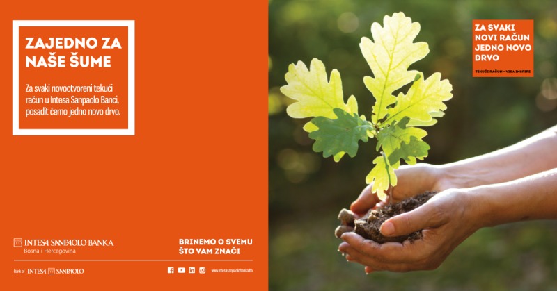 Danas se širom svijeta obilježava Dan planete Zemlje. Tim povodom Intesa Sanpaolo Banka pokreće novu akciju “Zajedno za naše šume” koja je namijenjena svim novim klijentima Banke koji se odluče otvoriti svoj tekući račun u Intesa Sanpaolo Banci.