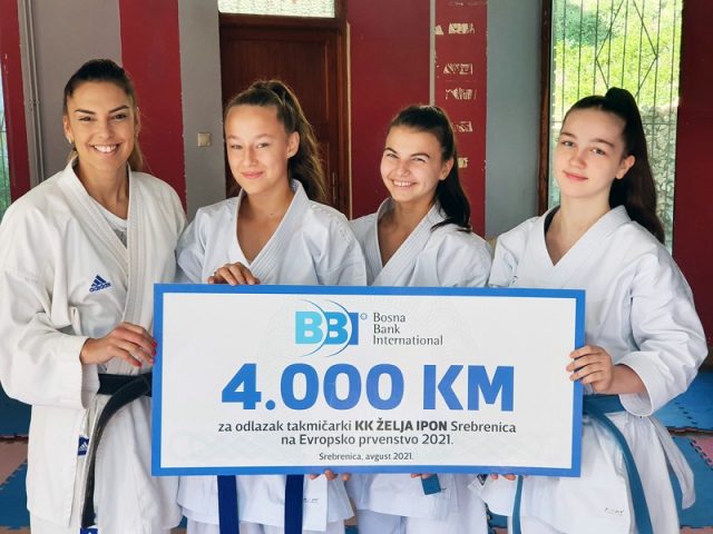 Merjem Peštalić, Aldijana Salihović i Kristina Stanojević iz Karate kluba „Želja Ipon“ iz Srebrenice učestvovat će na Evropskom karate prvenstvu u Finskoj zahvaljujući podršci Bosna Bank International (BBI) d.d. Sarajevo. Ove tri djevojčice nedavno su u Bugojnu kao kata tim osvojilie prvo mjesto na državnom prvenstvu Bosne i Hercegovine.