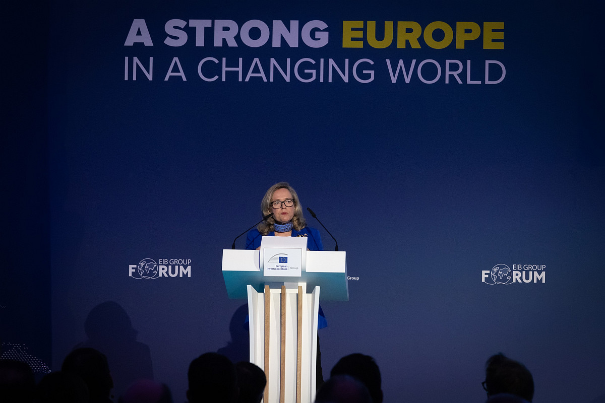 Na četvrtom Forumu Grupacije Evropske investicione banke (EIB), koji se ove godine održava od 3. do 5. marta u Luksemburgu pod nazivom „Snažna Evropa u svetu koji se menja”, predsednica Nađa Kalvino najavila je nova ulaganja u evropsku bezbednost i odbranu, kao i niz mera za unapređenje Unije štednje i investicija. Time će se podržati preduzeća koja žele da inoviraju, razvijaju se i budu konkurentna na globalnom nivou. U svom uvodnom govoru predsednica je istakla da Evropa ima snažne temelje i potrebu da ubrza ulaganja, integriše i pojednostavi svoje tržišta kapitala. Naglasila je da je u ovim turbulentnim vremenima jačanje evropskog suvereniteta i globalnih partnerstava važnije nego ikada.