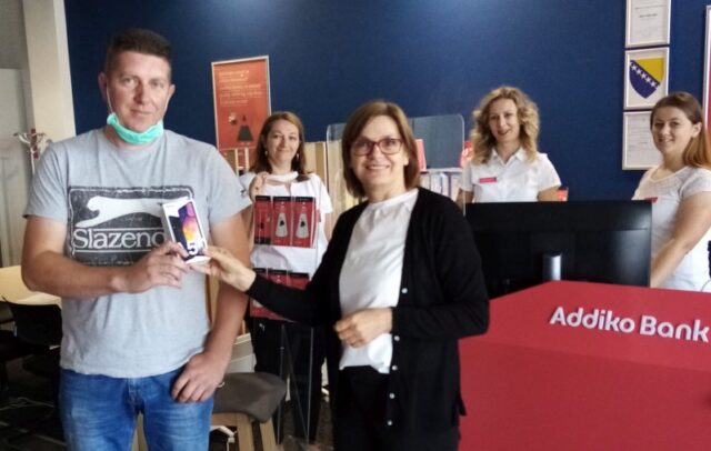Addiko banke u Bosni i Hercegovini u 2020. godini, svaki mjesec nagrađuju šest najsretnijih klijenta – korisnika usluge Addiko Mobile. Nagradna igra za sve postojeće i nove korisnike usluge mobilnog bankarstva – Addiko Mobile, počela je u decembru prošle godine i trajat će do kraja 2020. godine, a pravo učešća imaju svi klijenti Banke koji najmanje 3 puta mjesečno realizuju transakciju, koristeći ovu uslugu.
