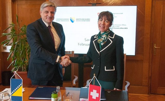 Sporazum su potpisali ambasadorica Švajcarske u BiH Nj.E. gđa. Andrea Rauber Saxer i guverner CBBiH dr Senad Softić.
