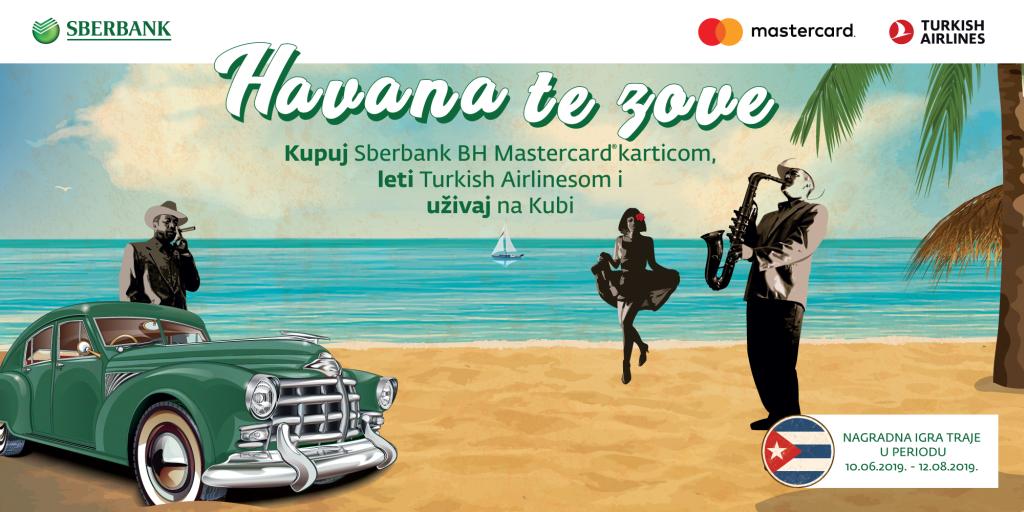 Provlačenjem bilo koje Sberbank BH Mastercard kartice u zemlji i inostranstvu, u periodu od 10.06. do 12.08. 2019. godine možete učestvovati u nagradnoj igri „Havana te zove“, i uživati u idealnom odmoru na kojem će vas dočekati filmski prizori. Vedri i nasmijani Kubanaci sjede ispred svojih kuća dok igraju šaha, i pijuckaju osvježavajuće piće. U pozadini se čuje dječija graja i taktovi zavodljive salse. Sve ove prizore posmatrate dok se vozite u taksiju iz 1950. godine jer oldtajmeri su zaštitni simbol ovog grada i države.