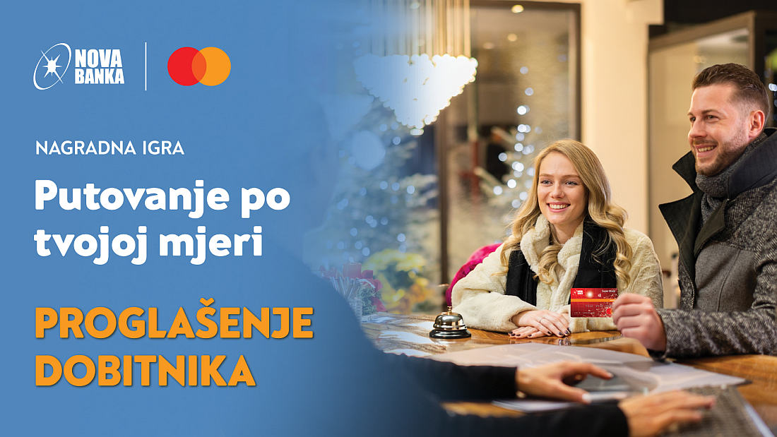 Nagradna igra „Putovanje po tvojoj mjeri“, koju je Nova banka organizovala u saradnji sa kompanijom Mastercard, dobila je svoje sretne dobitnike. Glavnu nagradu, vrijednu 5.000 KM za putovanje po sopstvenom izboru, osvojili su Momčilo Bodiroga iz Trebinja i Dragana Josipović iz Tuzle.