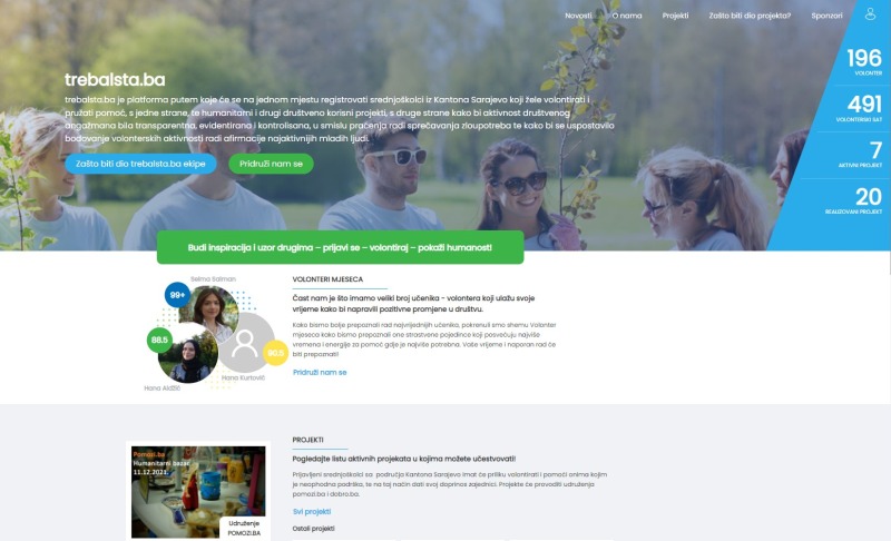 Od početka školske 2021/22 godine, na web platformi https://Trebalsta.ba registrovano je 196 učenika-volontera iz skoro svih srednjih škola Kantona Sarajevo, a broj učenika iz dana u dan raste. Učenici su na preko 20 realizovanih projekata od avgusta do danas proveli 491 volonterski sat.
