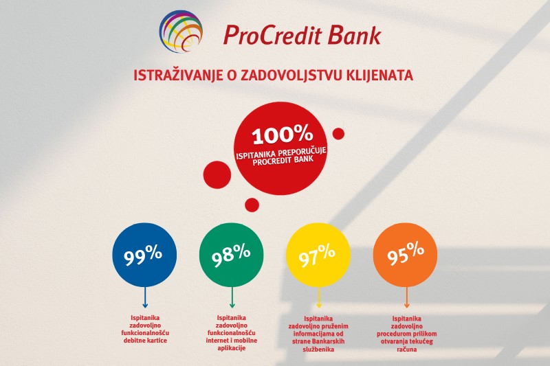 Osiguranje visokog stepena zadovoljstva klijenata i ostvarivanje dugoročnog odnosa predstavlja ključ uspjeha savremenog bankarskog poslovanja. Nivo zadovoljstva klijenata banaka često varira, tako da je kontinuirano mjerenje zadovoljstva izuzetno važno. Upravo zato, ProCredit Bank BiH redovno provodi ovu vrstu istraživanja kako bi stekla uvid i svakodnevno radila na poboljšanju iskustva klijenata.