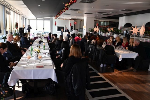 Domaćini prednovogodišnjeg druženja s predstavnicima medija su pored g. Stewarta bili i članovi Uprave Banke: gđa. Mirha Krivdić, gđa. Andreea Achim, te g. Edin Hrnjica, kao i g. Kreshnik Halili, koji obavlja funkciju konsultanta.