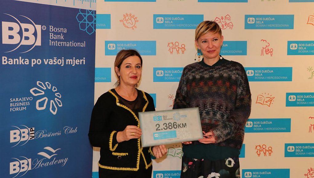 Ček za SOS dječije selo Sarajevo, direktorici odjela za fundraising i komunikacije Dženiti Subašić-Radonić uručila je Emina Šišić, članica Uprave BBI banke.