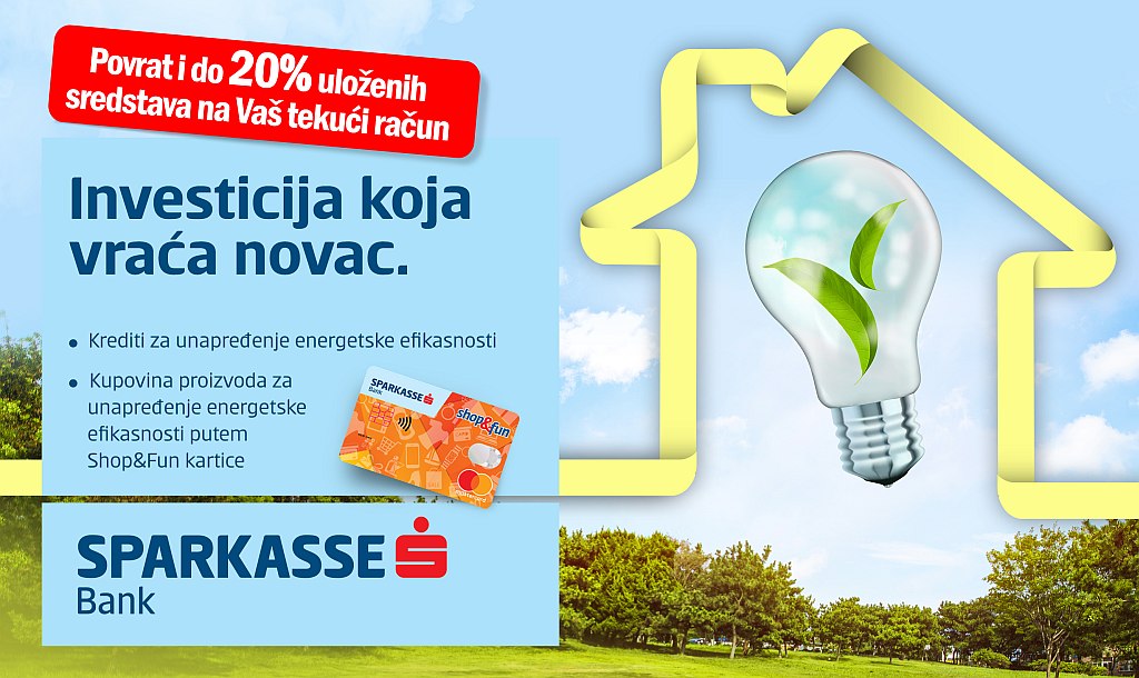 Vlasnici Shop&Fun Mastercard kartice Sparkasse Bank, od sada proizvode namijenjene poboljšanju energetske efikasnosti kupuju uz mogućnost povrata do 20% plaćenog iznosa.