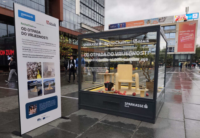 Kroz digitalnu ReUseChain.ba platformu i ovu izložbu, u partnerstvu sa Fondacijom Mozaik na konkretnom primjeru pokazujemo da otpad ne mora biti kraj jednog procesa, nego da može biti početak nove vrijednosti. Da ne mora biti teret i trošak, nego da se može transformisati u resurs i prihod. Ova promjena ekonomske logike iz linearne u cirkularnu može otvoriti velike šanse za održiv razvoj bh. ekonomije”, poručili su iz Sparkasse Banke.