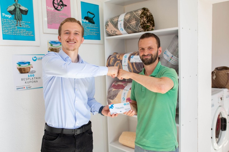 Jučer je mladi poduzetnik Hamdo Karaga, vlasnik startupa praonica veša „Lahor“ iz Mostara, najavio program podrške koji uključuje besplatno pranje i dostavu veša za 100 socijalno ugroženih i građana starije dobi. Trideset vaučera je uručeno predstavnicima H.O. „Izvor pomoći“ i udruženja „Zajedno za naš grad“ za dalju podjelu njihovim korisnicima.