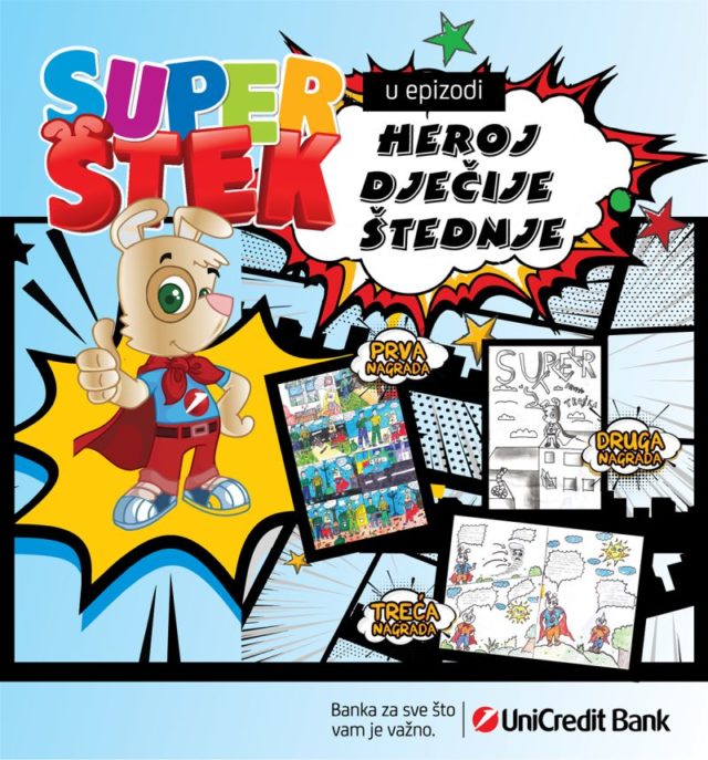 Podsjetimo, Super Štek, ljupki heroj koji vodi računa o štednji mališana, ove godine je pozvao učenike osnovnih škola u Bosni i Hercegovini da kreiraju strip i u istom zamisle Super Šteka kao glavnog junaka. S obzirom na to da je strip kao umjetnost u današnje vrijeme zanemaren, te da je pojedinačan doprinos očuvanju stripa skroman, Super Štek je došao na ideju da se ove godine opusti listajući zanimljive priče ispričane u oblačićima i potkrijepljene živopisnim prikazima tako što je mališanima dao zadatak da bar na kratko urone u taj udaljeni svijet i puste mašti na volju kreirajući strip u kojem će istaći divne vrijednosti u koje Super Štek vjeruje, a to su: igra, učenje, prijateljstvo, odanost, solidarnost, čuvanje naše okoline i štedljivost.