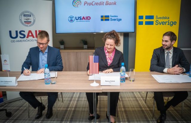 Kako bi se malim i srednjim preduzećima u BiH omogućio bolji pristup finansijskim sredstvima, Ambasada Švedske (Sida), Američka agencija za međunarodni razvoj (USAID) i ProCredit Bank potpisale su danas Sporazum o garanciji portfelja zajmova na kumulativni iznos od 19 miliona dolara na period od sedam godina.