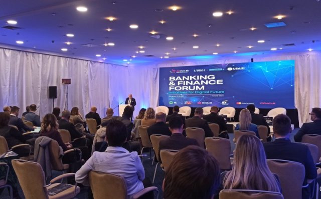 Banking&Finance Forum „Inicijative za digitalnu budućnost“ kojiorganiziraju Udruženje banaka Bosne i Hercegovini (UBBiH) i Američka trgovačka komora u BiH (AmCham BiH), počeo je jutros u sarajevskom hotelu Holiday a na ovom skupu okupilo se više desetina zvaničnika, predstavnika finansijskog sektora i privrede u Bosni i Hercegovini.