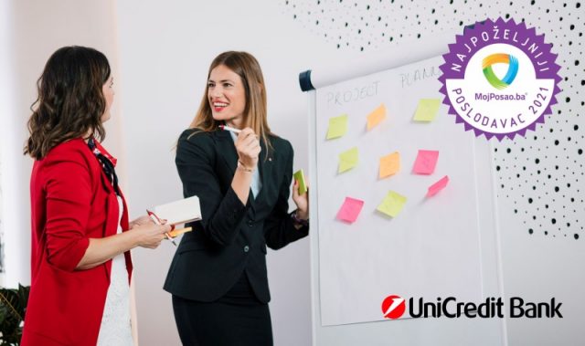 Trinaestu godinu zaredom, UniCredti Bank d.d. Mostar ponosno je ponijela titulu najpoželjnijeg poslodavca u finansijskom sektoru u Bosni i Hercegovini za 2021. godinu. Prema izboru portala mojposao.ba i ove godine građani su mogli ocijeniti i odabrati najpoželjnije poslodavce u različitim granama privrede.