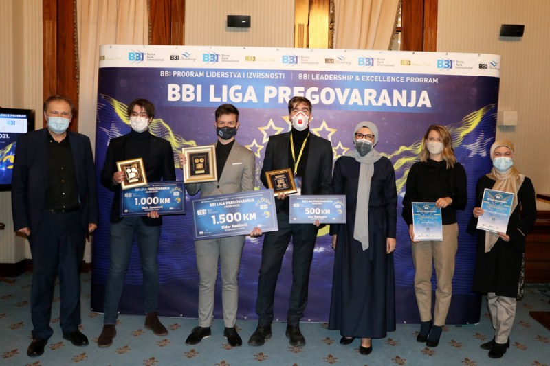 Svečanom ceremonijom uručenja nagrada i priznanja završen je prvi ciklus takmičenja „BBI liga pregovaranja“. Prvo mjesto u okviru BBI program liderstva i izvrsnosti i nagradu od 1.500 KM te zlatnu plaketu sa replikom novca kralja Tvrtka iz 14. stoljeća, osvojio je Eldar Hadžović iz Prve bošnjačke gimnazije. Drugoplasirani je Haris Junuzović, dok je treće mjesto osvojio Alen Šahinpašić, također iz Prve bošnjačke gimnazije. Oni su dobitnici novčanih nagrada od 1.000, odnosno 500 KM i srebrene plakete s replikom srednjevijekovnog bosanskog novca koje je izradio sarajevski zlatar Sofić.