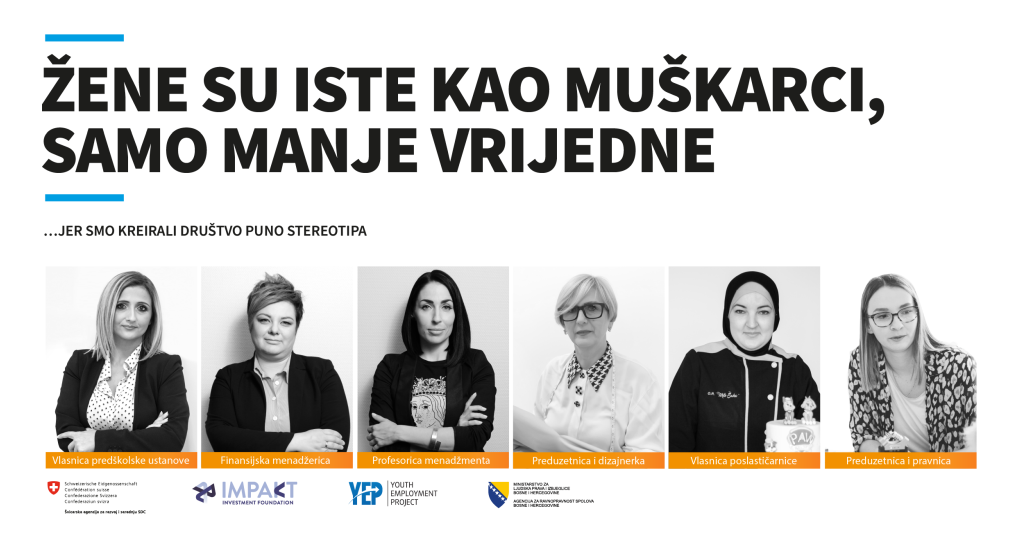 Također, prilikom otvorenja Centra biće predstavljena kampanja pod nazivom „Žene su iste kao muškarci, samo manje vrijedne“, čiji je idejni tvorac Projekat zapošljavanja mladih (YEP), a realizira se uz podršku Švicarske agencije za razvoj i saradnju (SDC) i u saradnji sa Agencijom za ravnopravnost spolova. Kampanja ima za cilj ukazati na problem kako rodnih stereotipa sa kojima se žene susreću i zbog čega je njihova uloga u društvu nerijetko svedena na „tradicionalnu“ ulogu žene, ali i problem nedovoljnog učešća žena na tržištu rada zbog prepreka koje su vrlo često rezultat upravo rodnih stereotipa.