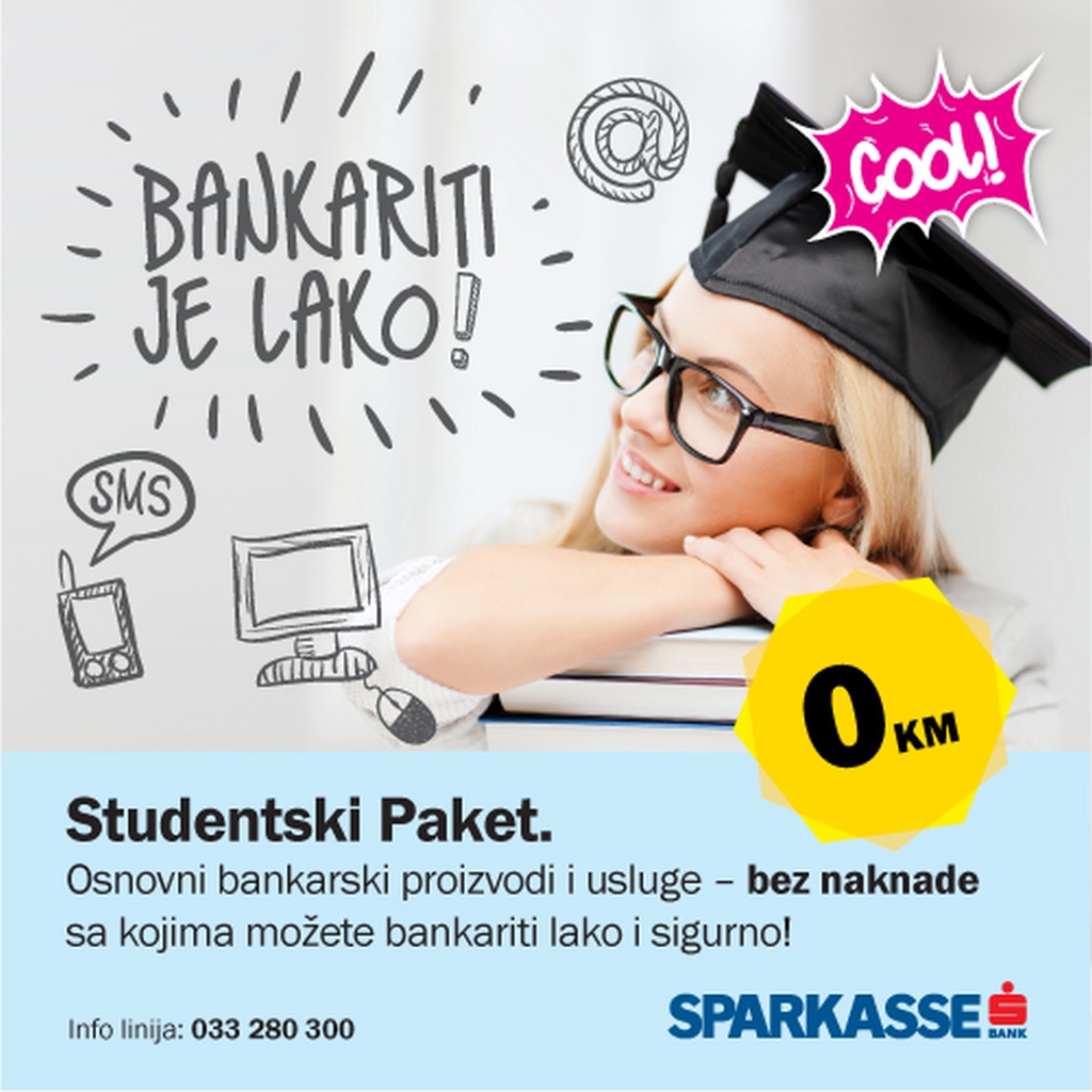 „U ovom periodu kada su aktuelni upisi na fakultete, želimo podsjetiti na Studentski paket iz naše ponude, koji je za ovaj segment populacije potpuno besplatan, te objedinjuje sve one bankarske proizvode i usluge koje su mladima korisne u vođenju njihovih finansija“, izjavio je Ahmed Karić, direktor sektora za poslovanje sa stanovništvom Sparkasse Bank.