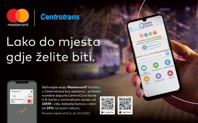 Svi putnici Centrotransa, na gradskim i prigradskim lokacijama grada Sarajeva, koji to do sada nisu učinili, svoju Centrotrans mobilnu aplikaciju mogu preuzeti sa Google Play ili App Store-a, a potom u aplikaciji mogu sačuvati i svoju Mastsercard karticu za jednostavnije dopune računa svakog narednog puta. Posebno jer sve putnike Centrotransa i korisnike Mastercard kartica, koji u periodu od 15.06. do 15.09.2022. dopune svoj CentroCard račun ili E-kartu sa 10KM i više, očekuje bonus u vrijednosti od 25% na korisničkom računu.