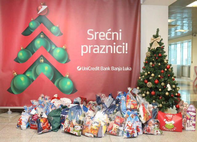 U duhu novogodišnjih praznika, već tradicionalno, zaposleni u UniCredit banci Banja Luka nastoje uljepšati praznike i početak nove godine, kroz zajedničke akcije doniranja. Ove godine novogodišnji paketići, koje su zaposleni Banke, zajedno sa svojom djecom, prikupili u okviru inicijative “Djeca poklanjaju djeci” (Kids4Kids), donirani su djeci, korisnicima Dnevnog centra za djecu u riziku Udruženja “Nova generacija”, zatim djeci članovima porodica sa četvoro i više djece u Trebinju te najmlađim korisnicima usluga Udruženja građana – javne kuhinje “Mozaik prijateljstva”.